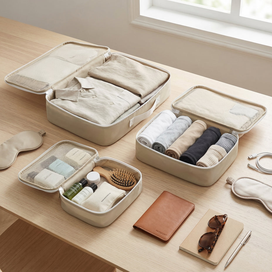to essential toiletries, our durable, stylish cub set makes packing smarter and faster. A must-have accessory for modern travelers who value efficiency and style on the go. Experience stress-free packing and elevate your journey with cubes that simplify your travel experience.